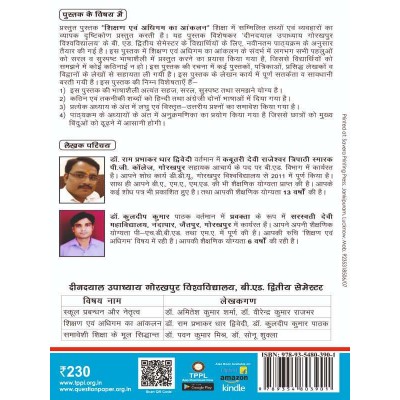 Assessment of Teaching and Learning (शिक्षण और अधिगम का आकलन) Book for Deen Dayal Upadhyay Gorakhpur University, B.Ed 2nd Semester in Hindi
