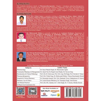 Buy a latest edition of Pharmacotherapeutics book D.pharm 2nd  year prescribed by PCI Syllabus. Pharmacotherapeutics text book covered all syllabus.