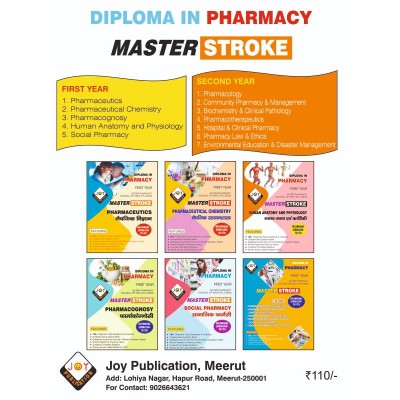 JOY Publication’s Latest and Bestselling Question Banks – ‘Masterstroke’ for Diploma in Pharmacy 1st Year Students | Bilingual (English-Hindi) Format | 120+ Objective Type Q&A | Covered Complete Syllabus | As per approved syllabus of Pharmacy Council of India | Written by Experts | Fast Delivery | All India Delivery |