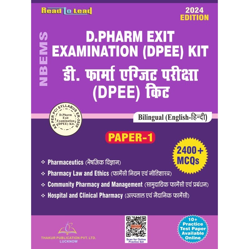 Prepare for the D.Pharma Exit Exam 2024 with the comprehensive Combo Pack of the ‘DPEE Kit (Paper 1)’ This bilingual edition (English-Hindi) offers an extensive collection of over 2,400 multiple-choice questions (MCQs) for Paper 1 and more than 4,600 MCQs for . Published by Thakur Publication, this kit is designed to provide you with a thorough and effective study resource for your exam preparation.