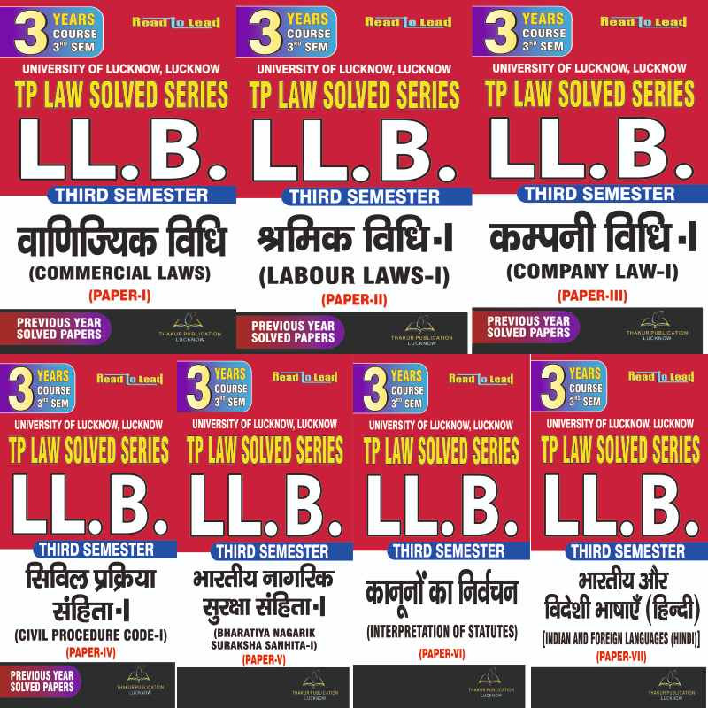 3 Year CourThird Semester (Hindi) University of Lucknow TP Law Solved Series Book Set (6 in 1) Combo pack