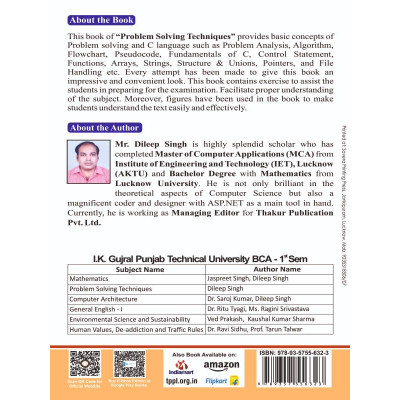 This book is specially designed for BCA First Semester students to build strong analytical and logical thinking skills. It covers the fundamental concepts of problem-solving, flowcharts, algorithms, and programming logic in a simple and structured manner. With easy-to-understand examples and exercises, the book helps students develop systematic approaches to solve computational problems and lays a solid foundation for further programming courses.