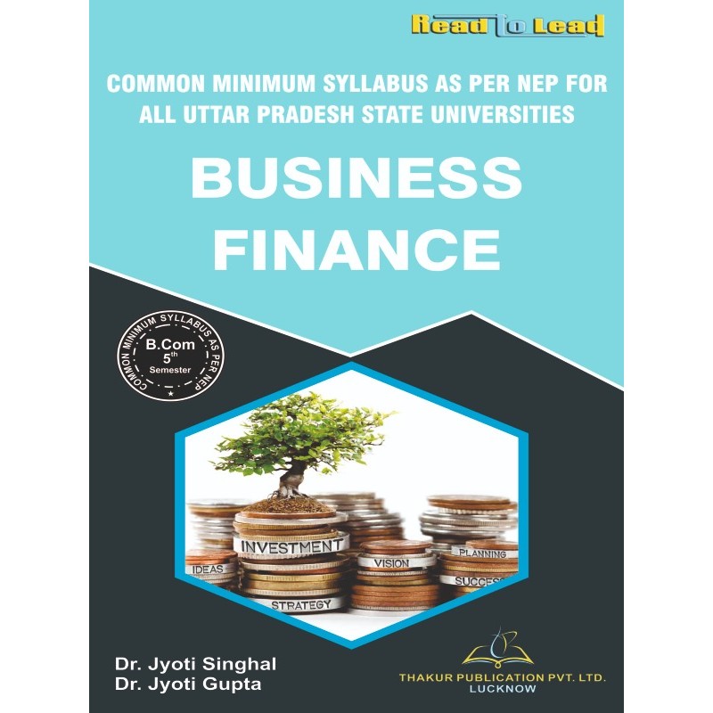 Discover the comprehensive BUSINESS FINANCE book in English edition for B.Com 5th Semester students from all U.P. State Universities. Aligned with the Common Minimum Syllabus as per NEP, this authoritative guide is published by Thakur Publication.