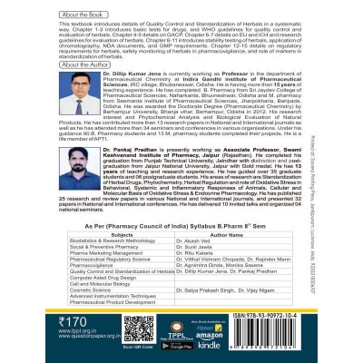 Quality Control and Standardization of Herbals is a book for B.Pharm 8th semester students as per the PCI regulations.