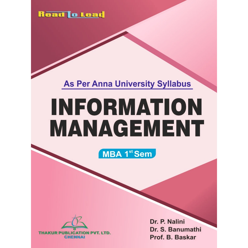 Buy Latest Information Management Book for Mba 1st Semester in English language specially designed for ( Anna University, Chennai ) By Thakur publication.