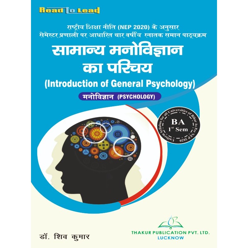 Buy latest Book titled “Introduction of General psychology सामान्य मनोविज्ञान का परिचय” बी0 ए0 प्रथम सेमेस्टर (बिहार के समस्त विश्वविद्यालयों हेतु) ठाकुर पब्लिकेशन द्वारा प्रकाशित। हिंदी भाषा में उपलब्ध। राष्ट्रीय शिक्षा नीति (NEP-2020) के अनुसार सामान पाठ्यक्रम बिहार के समस्त विश्वविद्यालयों हेतु (Credit Based Choice System) पर आधारित चार वर्षीया स्नातक पाठ्यक्रम.
