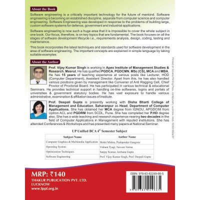 BCA UP Unified Syllabus (UP State Universities), Fourth SemesterSyllabus BCA-S208: SOFTWARE ENGINEERING Unit-I: Software EngineeringDefinition and Paradigms, A Generic View of Software Engineering. Unit-II: Requirements AnalysisStatement of System Scope, Isolation of Top Level Processes and Entitles and their Allocation to Physical Elements, Refinement and Review. Analyzing a Problem, Creating a Software Specification Document, Review for Correctness, Consistency, and Completeness. Unit-III: Designing Software SolutionsRefining the Software Specification; Application of Fundamental Design Concept for Data, Architectural and Procedural Designs Using Software Blue Print Methodology and Object Oriented Design Paradigm; Creating Design Document: Review of Conformance to Software Requirements and Quality. Unit-IV: Software ImplementationRelationship between Design and Implementation, Implementation Issues and Programming Support Environment, Coding the Procedural Design, Good Coding Style and Review of Correctness and Readability. Unit-V: Software MaintenanceMaintenance as Part of Software Evaluation, Reasons for Maintenance, Types of Maintenance (Perceptive, Adoptive, Corrective), Designing for Maintainability, Techniques for Maintenance. Unit-VI Comprehensive Examples Using Available Software Platforms/Case Tools, Configuration Management.