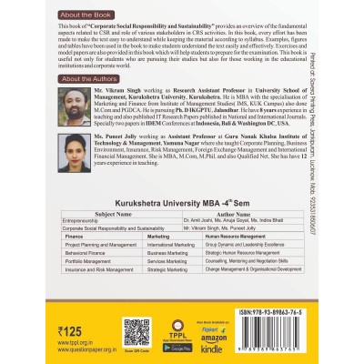 Buy Latest Corporate Social Responsibility & Sustainability Book for Mba 4th Semester in English language specially designed for SPPU (...