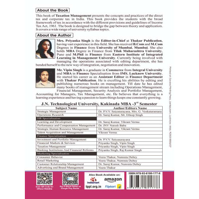Buy Latest Taxation management Book for Mba 3rd Semester in English language specially designed for jntuk (Jawaharlal Nehru Technological University Kakinada, Andhra Pradesh) By Thakur publication.