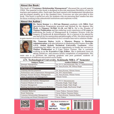 Buy Latest Customer Relationship Management Book for Mba 3rd Semester in English language specially designed for jntuk (Jawaharlal Nehru Technological University Kakinada, Andhra Pradesh) By Thakur publication.