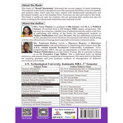 Buy Latest Retail Marketing Book for Mba 3rd Semester in English language specially designed for jntuk (Jawaharlal Nehru Technological University Kakinada, Andhra Pradesh) By Thakur publication.